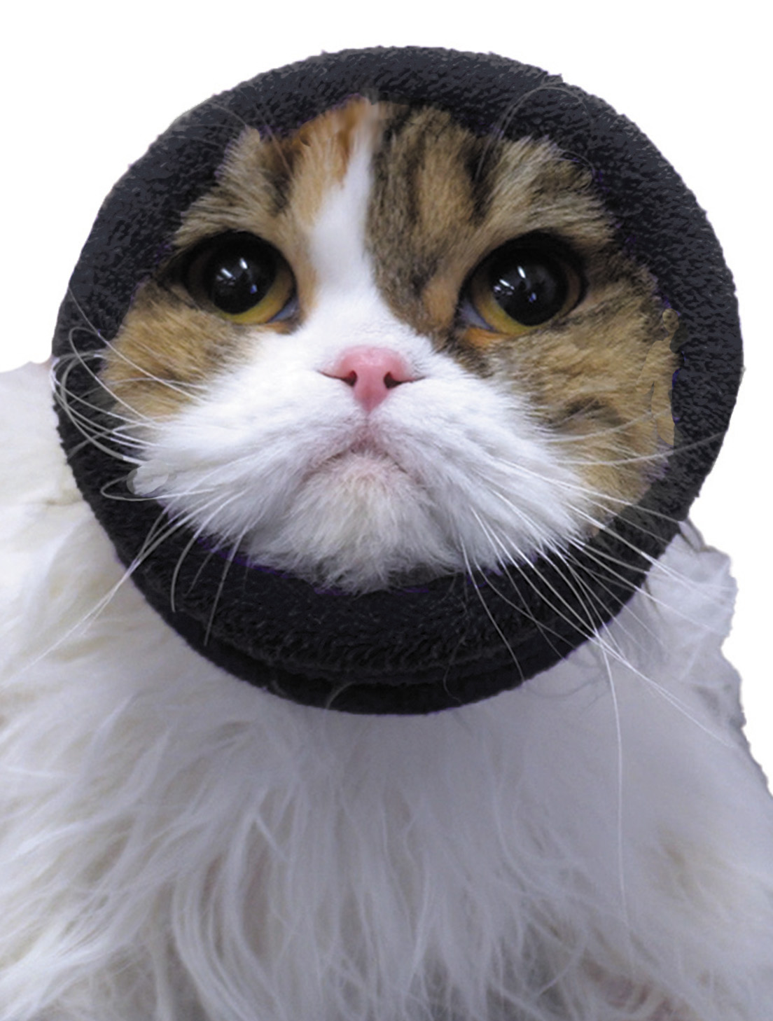 band back over the top of the head to secure the ears in place. Adjust the width of the band to best fit the pet by folding over excess material once the band is on.